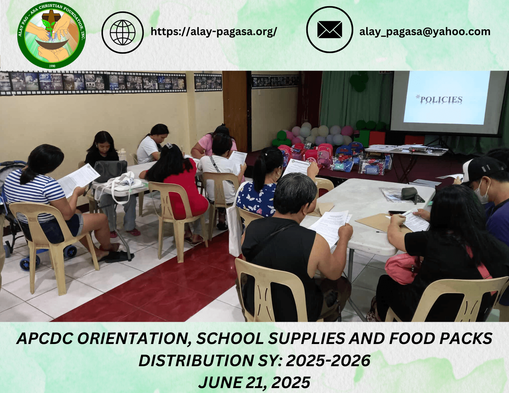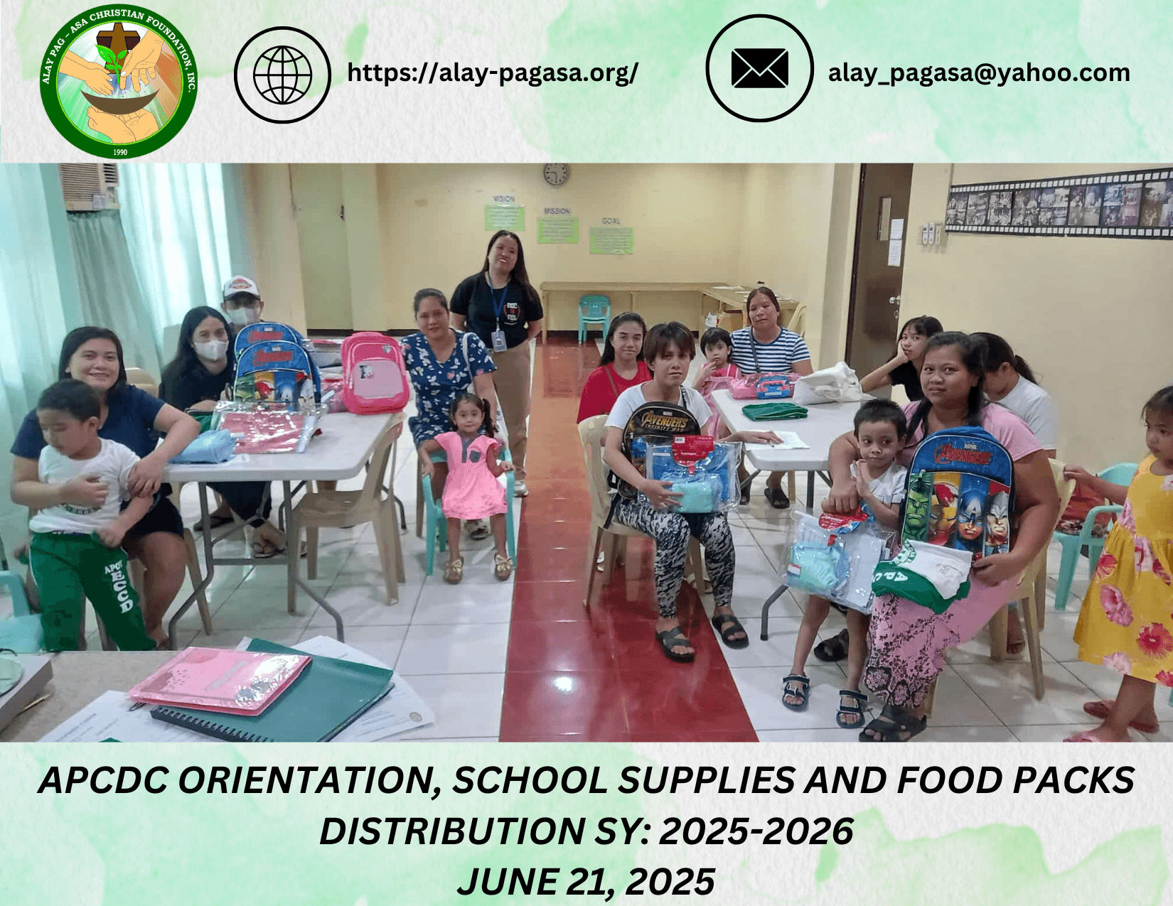 APCDC Orientation and Supplies & Food Packs Distribution for S.Y. 2025-2026
